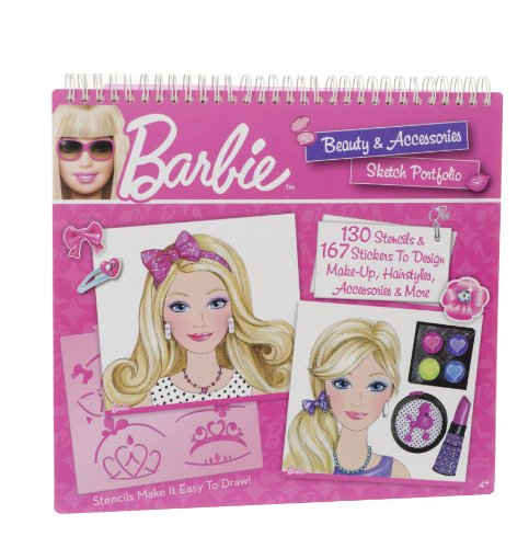 Barbie's outfit is never complete without the right hairstyle and make-up. The Barbie Beauty and Accessories Sketch Portfolio makes it easy to style and design Barbie in the latest make-up and accessory trends. Use the removable plastic stencil sheets to outline the perfect hair style, make-up and accessories. The instructions provide tips and inspiration on how to color, shade and add details to make each look perfect for Barbie. Finish off and embellish the beautiful designs with the foil stickers included in the spiral-bound portfolio book. This sketch portfolio includes 40 beauty sketch sheets featuring 5 different scenes, 5 removable plastic stencil sheets with 130 stencil designs, 167 stickers and instructions. It also includes a spiral-bound sketch portfolio with a plastic cover.